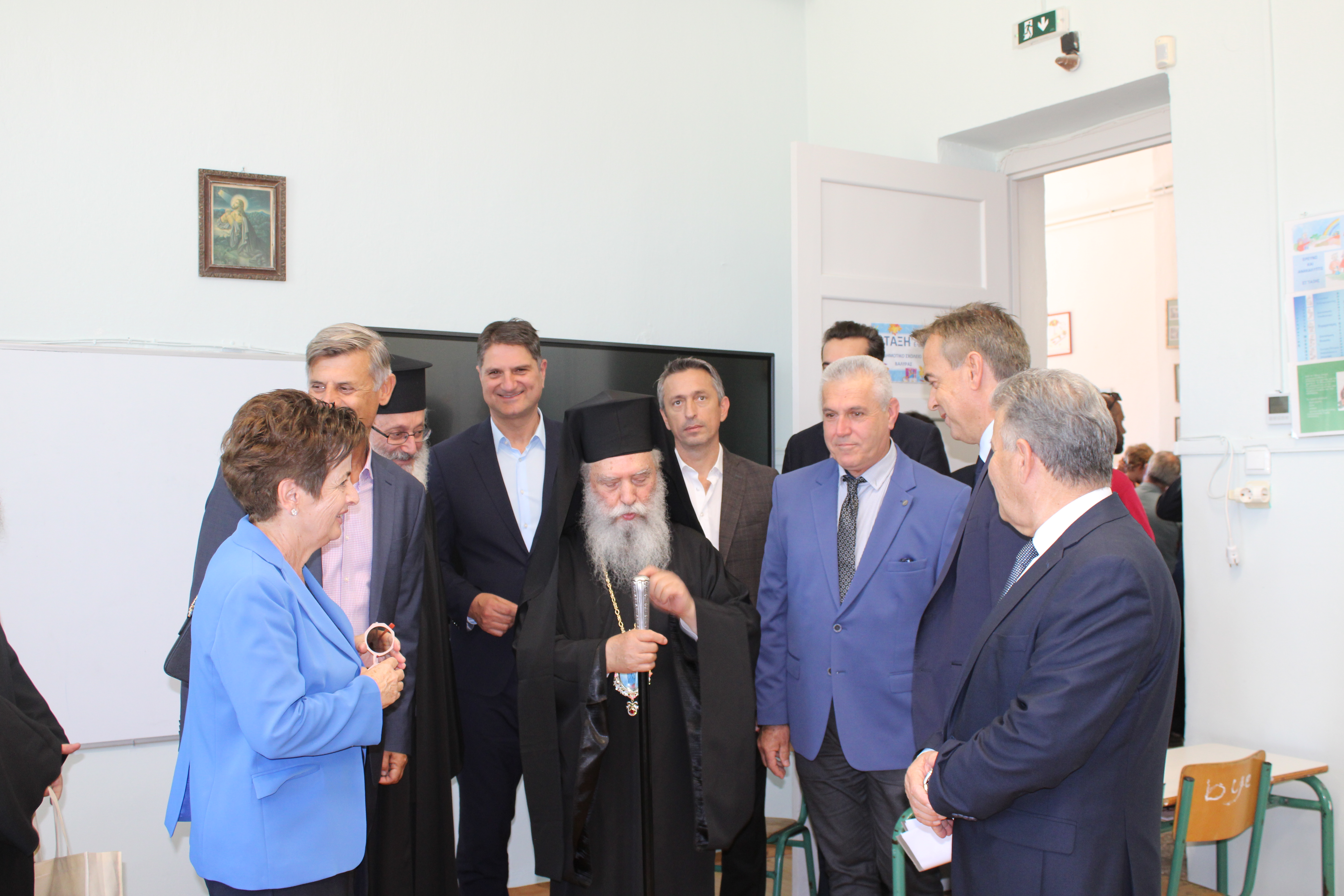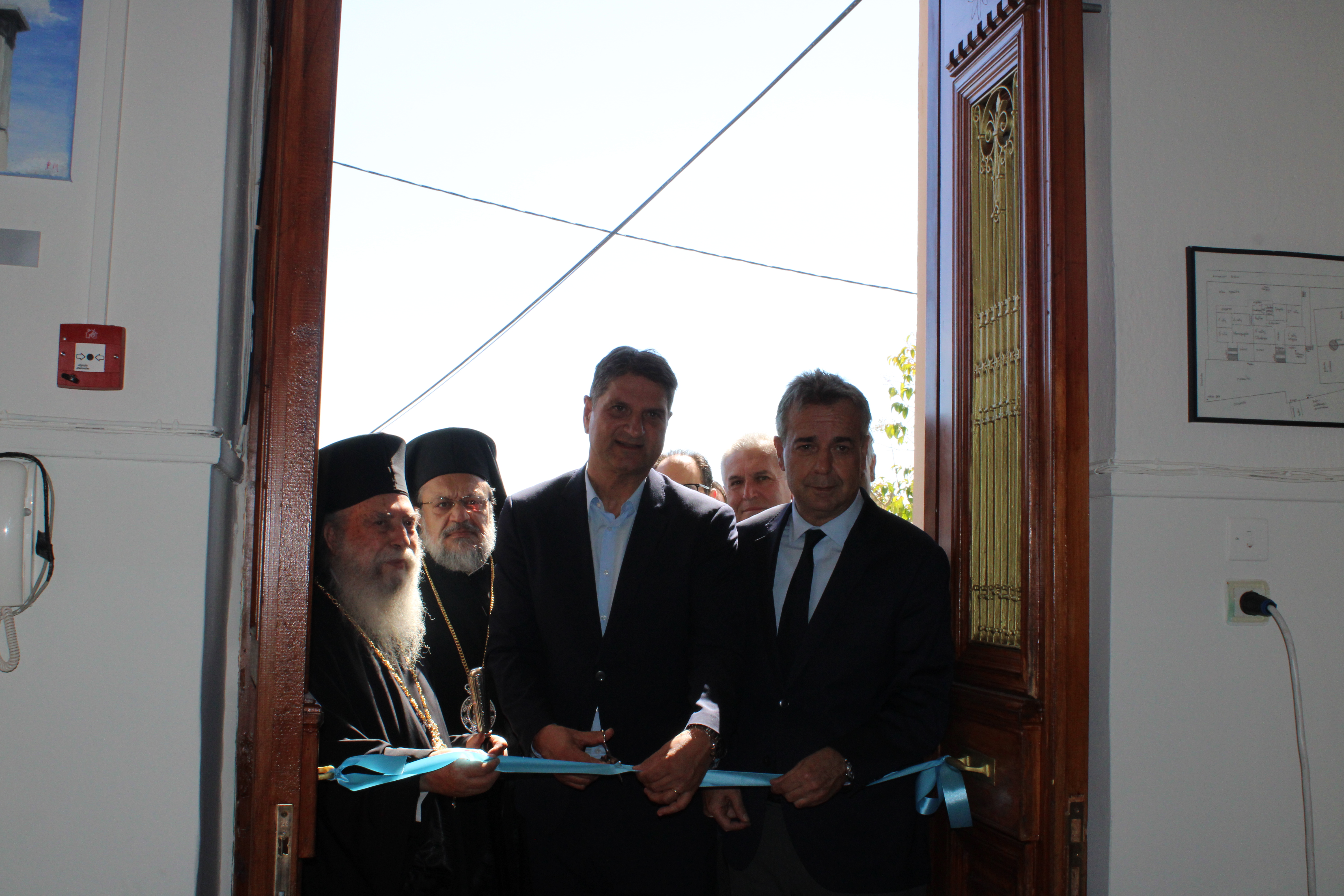 Ακολούθησε το κόψιμο της κορδέλας των εγκαινίων και η περιήγηση στις ανακαινισμένες αίθουσες του σχολείου.